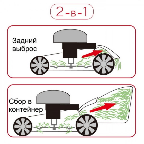 Поддерживает 2 рабочих режима: задний выброс, сбор в контейнер.